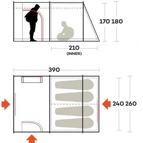Ideale per il campeggio stanziale, ampia e munita di ampio abside anteriore.